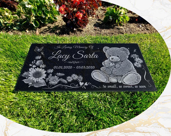 Infant Loss Grave Marker, Personalized & Engraved on Black Granite